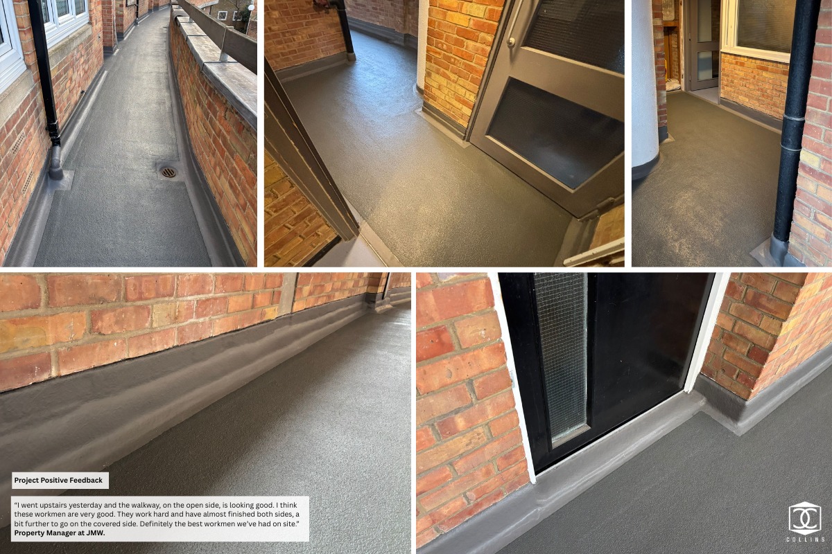 As part of our external repair and redecoration project to this residential block located in Battersea, we have just completed resurfacing works to the pedestrian walkways.