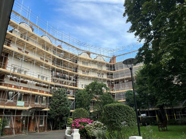 The external refurbishment and redecorations to this period architectural style property located in central West Hampstead is now in progress. The scaffold erection works are progressing well and running to schedule. Works to this imposing mansion block will include the following – Scaffolding Temporary roof Pitched roofing renewal & associated repairs Timber repairs Insulation upgrade…