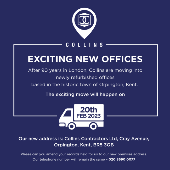 We Have Moved NewsBy Collins ContractorsFebruary 2023Watch out for our new office video clip coming soon!