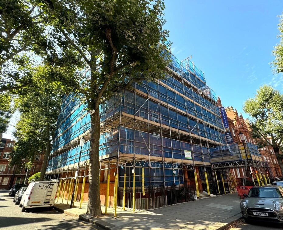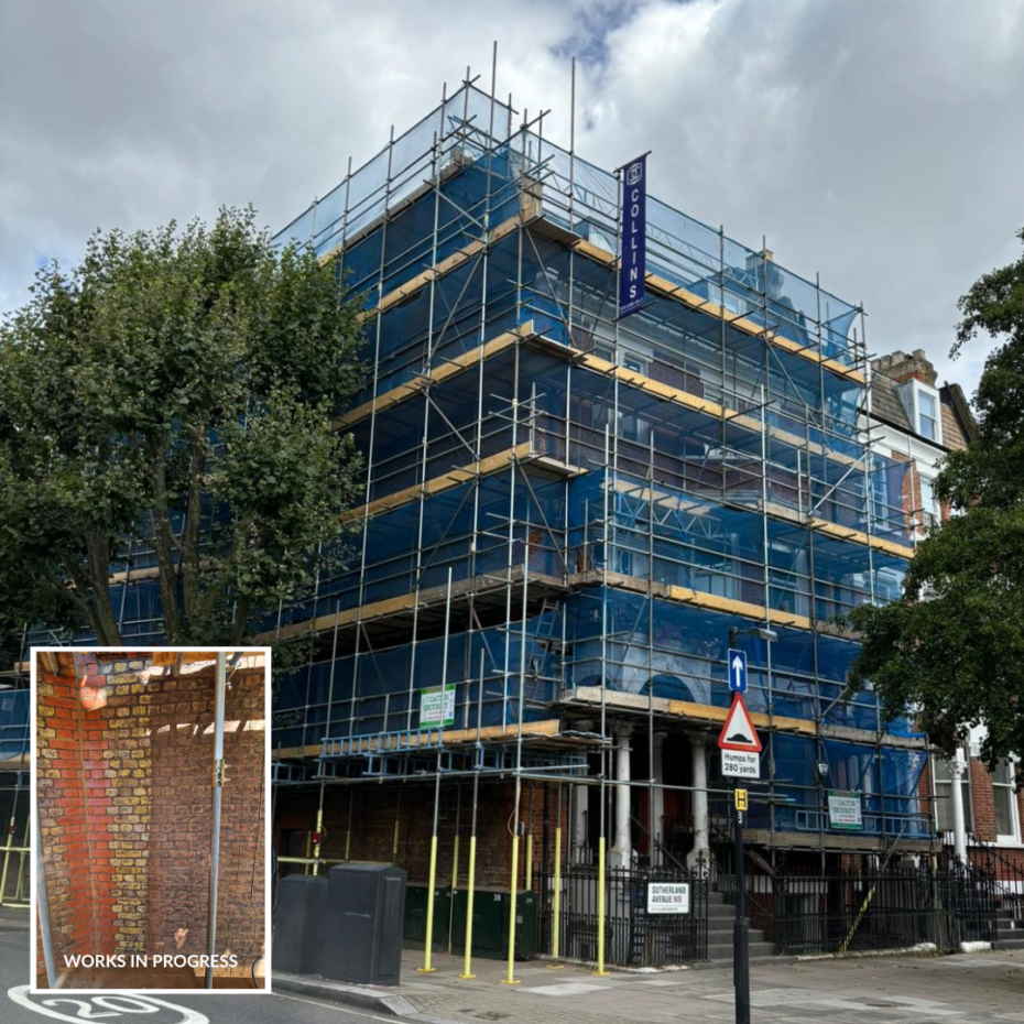 Works are progressing well onsite at 106 Sutherland Avenue. The Scaffolding is now complete, the Doff cleaning is in progress and the masonry repairs are being scheduled. We look forward to sharing project updates as this 16 week internal and external refurbishment progresses.