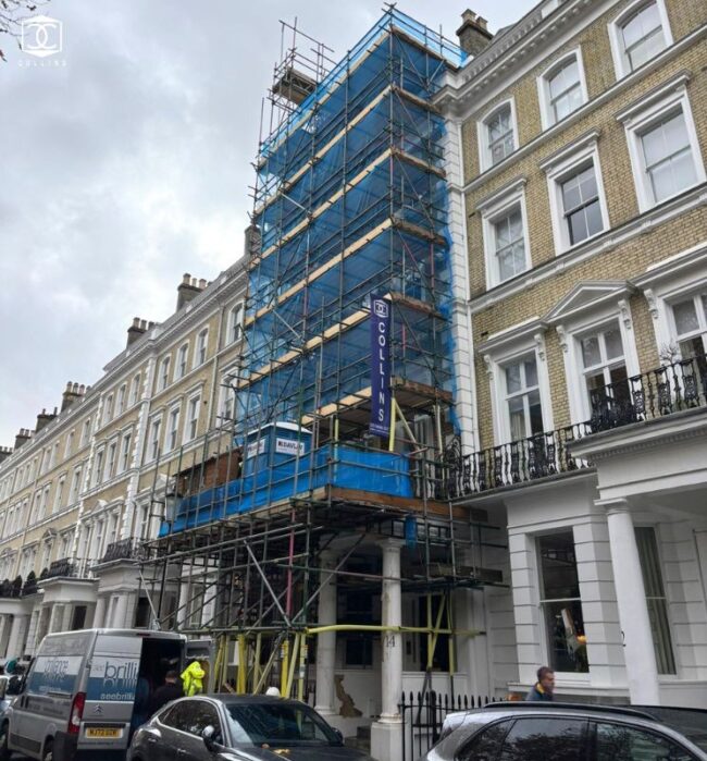 Collins are currently carrying out the external restoration of the front elevation at No 14 Cranley Gardens. Our works include the following: Full access scaffolding to front elevation, and high level access to rear Doff cleaning Roofing works including replacement of missing slates, lead repairs & replacing the access roof hatch Renewing asphalt covering and…