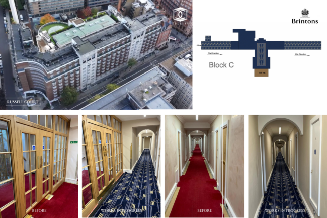 We are finally laying the long awaited ‘bespoke’ carpet to the 9th floor corridors at Russell Court. We have been working closely with the board of Directors, Ingleton Wood, Brintons & our installers to achieve and deliver this custom ‘one-off’ carpet for this block. We have approx. 2500m2 of carpet to lay here across 10…