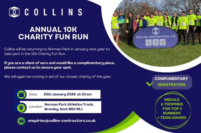 Collins are returning to Norman Park on 25th January 2026 to take part in the 10k Charity Fun Run. Join Us – If you are a client of ours and would like a complimentary place, please contact us to secure your spot > Email: enquiries@collins-contractors.co.uk We will be running in aid of our chosen charity for…
