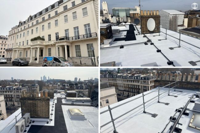 We have handed over to our clients the external refurbishment works to this Grade II Listed Building located in the City of Westminster. Following the recent weather improvement we have now applied final coats of the solar reflective painting to the recently installed IKO insulated asphalt roofing system complete with new recycled rubber granulated walkway…