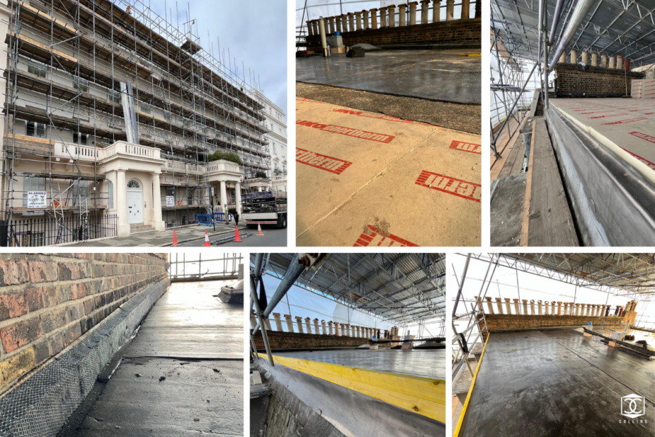 The external refurbishment and roof replacement works to this Grade II Listed building in the heart of Belgravia, are progressing well. The majority of roofs have now been stripped, and insulated ready to receive the new asphalt roof covering in accordance with the IKO Roofing specification. The timber and masonry repair schedules have been approved…
