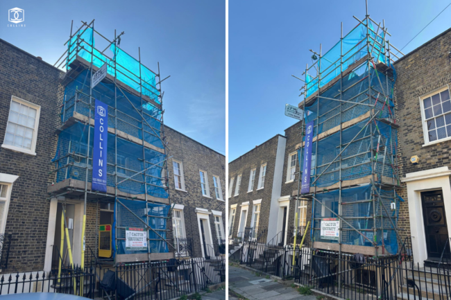 Works are progressing well to this mid terraced Victorian House located on the south side of St Mary’s Walk in the heart of Kennington. We have been appointed to undertake the following works; Roofing repairs & sectional replacement Doff cleaning to all elevations Extensive Masonry works – including 100% repointing to both elevations Overhaul of timber…