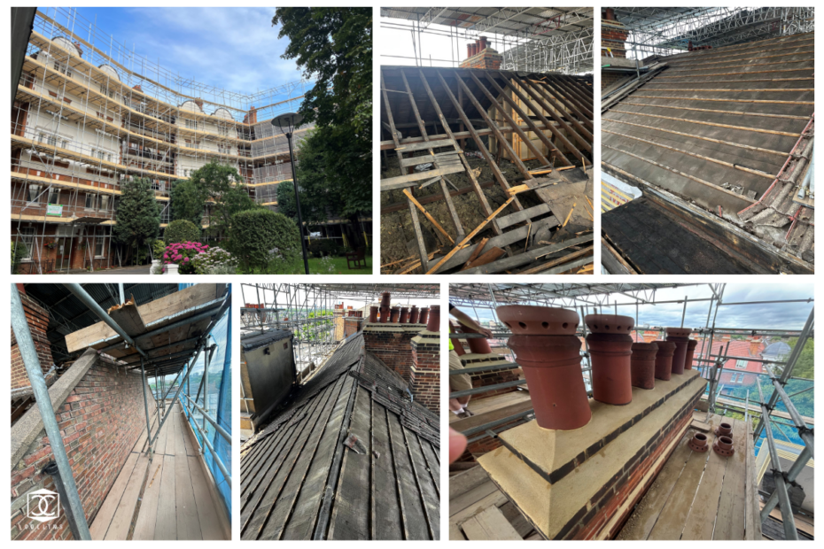 Following an external Doff clean, we are currently in the process of stripping the roof back to its original structure. This includes removal of the original tiles and the close boarding. We have installed 50no chimney cowls as well as completing all flaunching and pointing works to 9no chimney stacks. We are now progressing with…