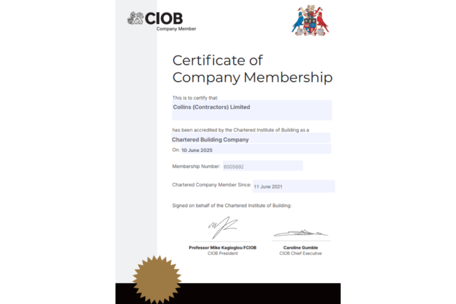 Collins have completed the transition to the new Company Membership Regulation as a Chartered Building Company. This Chartered status demonstrates that our organisation is committed to professionalism and excellence within the industry. The Chartered Institute of Building (CIOB) is the largest and most influential professional body for construction management and leadership. We are proud to…