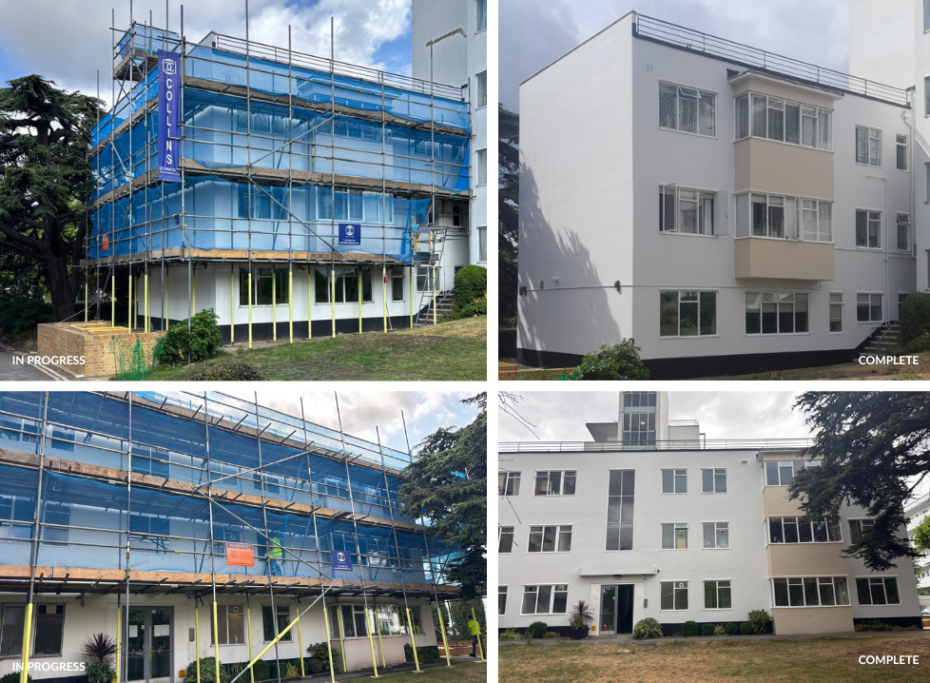 The external repairs and redecorations to this residential block located in South West London is now complete. Works to this project included – Internal repairs & redecorations to all communal areas plus 3 individual flats Upgrades to existing fire doors Masonry repairs Concrete repairs Complete external redecorations For a detailed case study, please contact us.