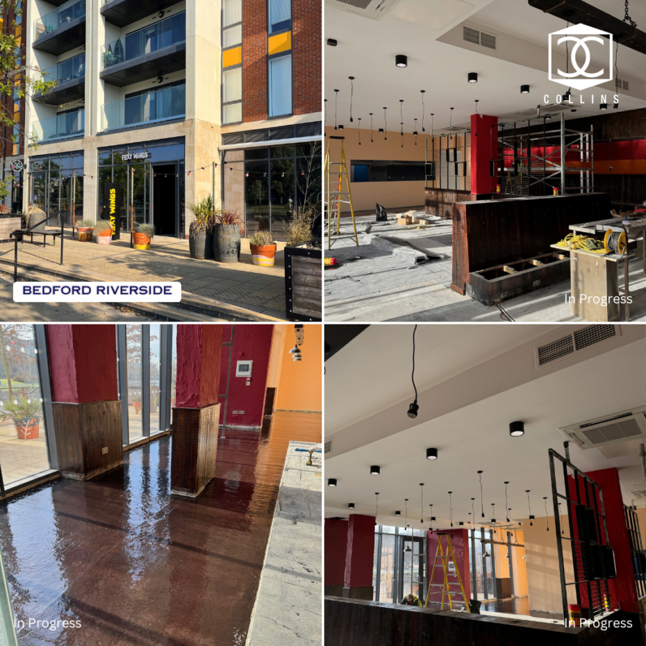 The strip out and reinstatement works are almost complete to this riverside restaurant located in Bedford. Collins have been refurbishing this fire damaged property, which will become a Tapas restaurant. Look out for completed photos coming soon.