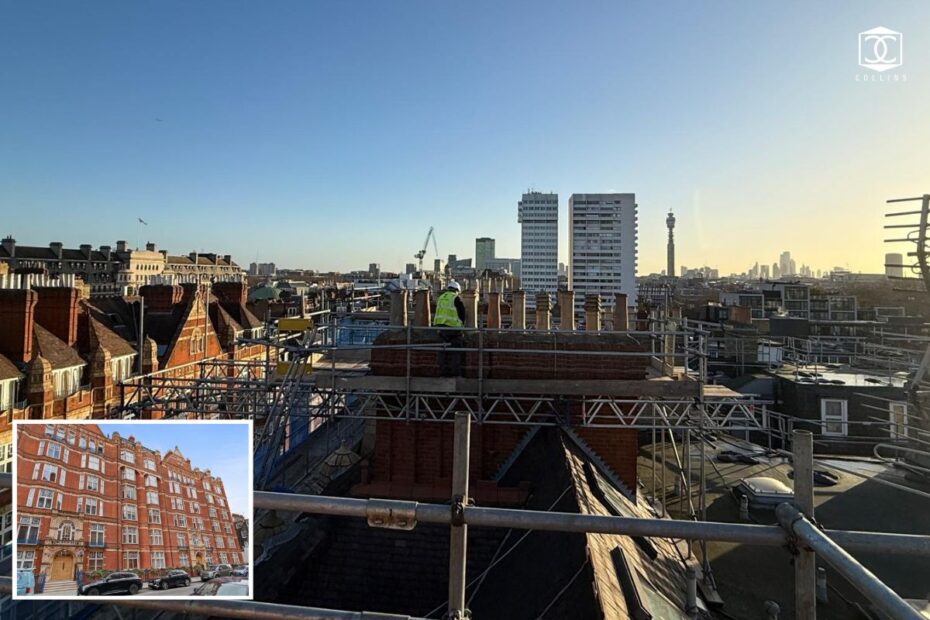 Scaffold has been dismantled to 1st floor balcony level on the garden facing elevation following completion of the structural works to the chimney stack. We are finishing the last asphalt balcony replacements, then scaffold can be removed for the low-level works to commence. We have received planning consent to carry out the terrace waterproofing upgrade…