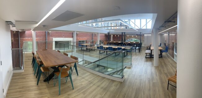 Client: Farnborough Hill School Value: £1,000,000 Contract Period: 48 weeks Status: Completed Project Description: The construction of a 6th form break out / leisure facilities area within a redundant space of this 1860’s Grade I Listed building. Works to this leading independent day school included the following: Steel framed mezzanine floor with glass perimeter balustrading…
