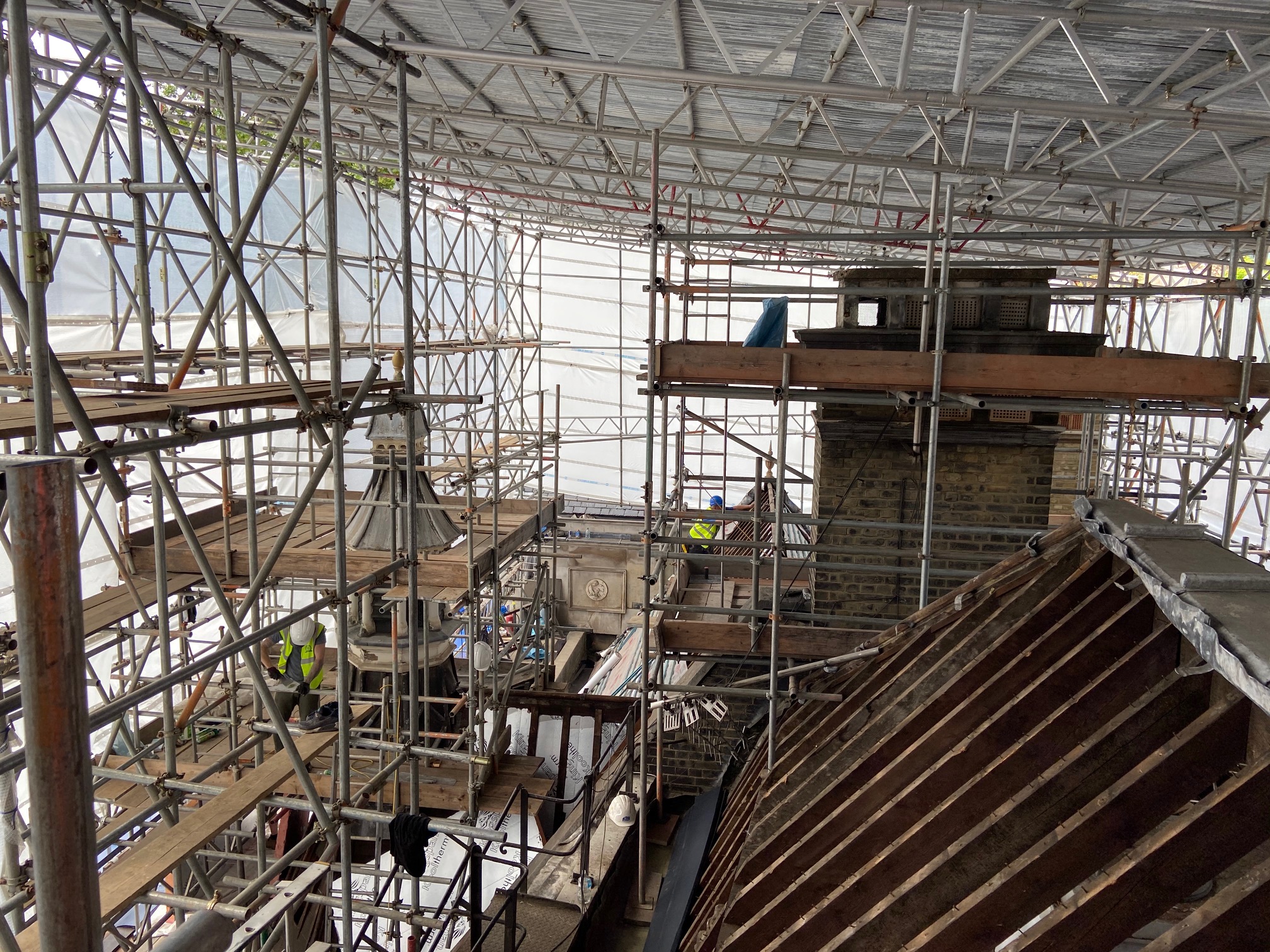 Project Update – The external refurbishment and roof replacement to this historic property located near St Paul’s, is fully underway. This photo was taken underneath the temporary roof.